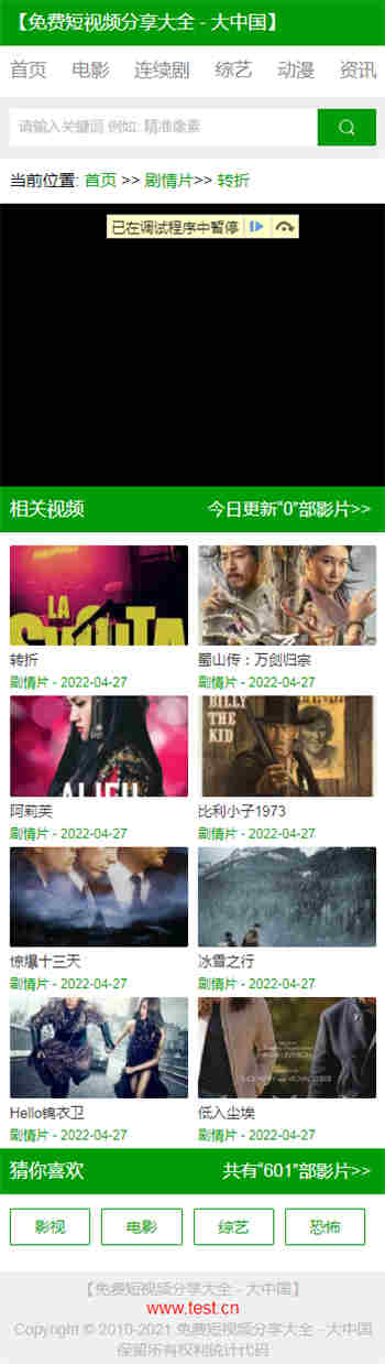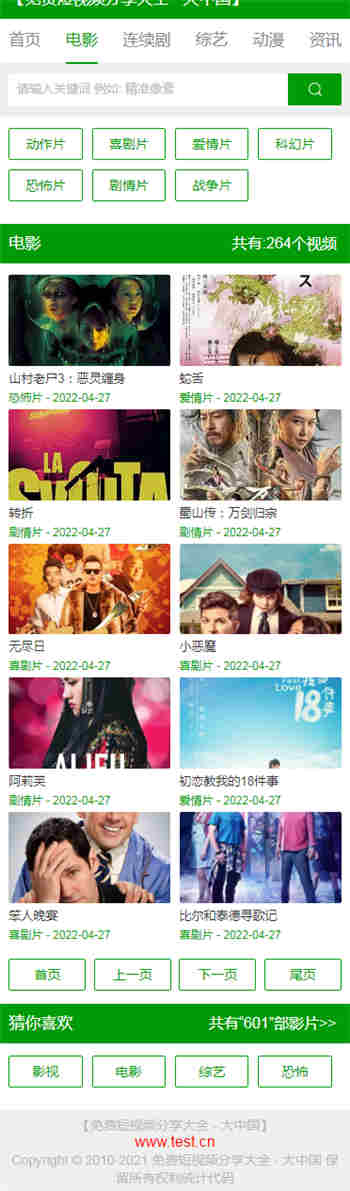 再次分享一款绿色扁平风格的苹果CMS手机模板,v10版本,已测试,完美无错,修复部分BUG,去除自带的广告。