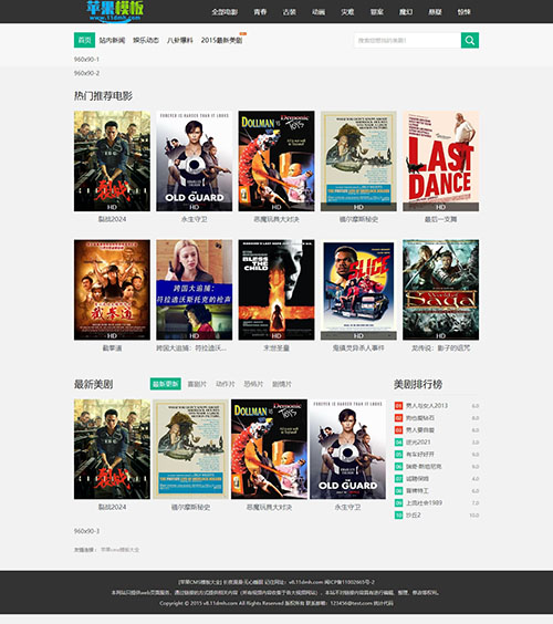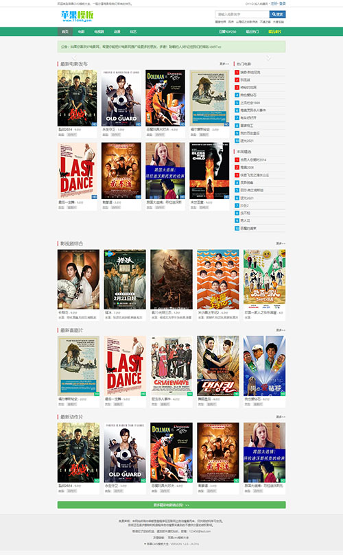 模板一模板在功能方面也表现非常出色。它支持多种影视资源的展示,包括电影、电视剧、综艺节目等。模板还支持在线播放、下载等功能,用户可以在不离开网站的情况下轻松观看或下载自己喜欢的影视资源。