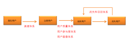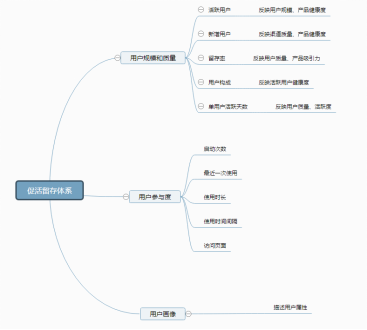 2.针对注册用户和活跃用户的促活留存环节是运营人员的最主要工作之一,我们日常所做的用户分层分类、用户成长激励体系等都是在这个环节做的,体现在数据上我们可以设立的指标体系包括了解用户规模和质量的体系,了解用户参与度(使用深度)的体系和了解用户属性的用户画像体系。