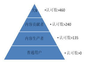 可以看出分布近似于对数正太分布,通过类似分布直方图定义第一,第二,第三四分位点作为临界值,将用户划分为普通用户、内容生产者、内容贡献者和大V四个等级用户。
