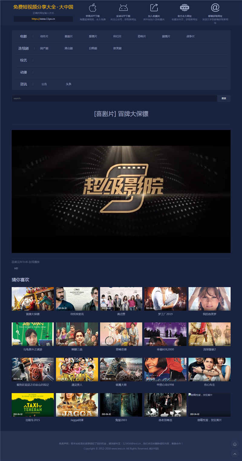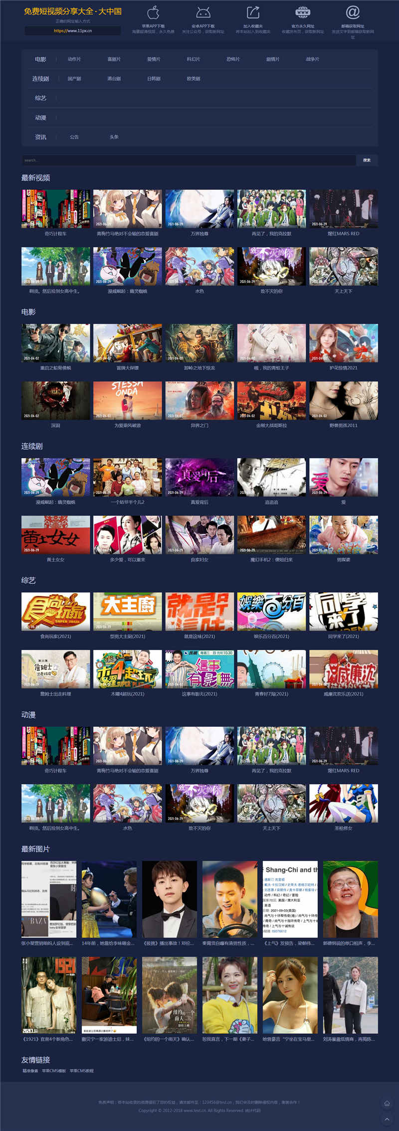 最新出品苹果cmsV10深蓝色自适应模板,自适应手机端,V10版本,修复导航错位BUG,已测试完美无错。