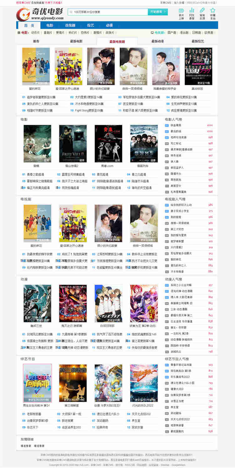 一款仿奇优电影网模板,苹果cmsV8版本,电脑PC+WAP手机双端模板。
