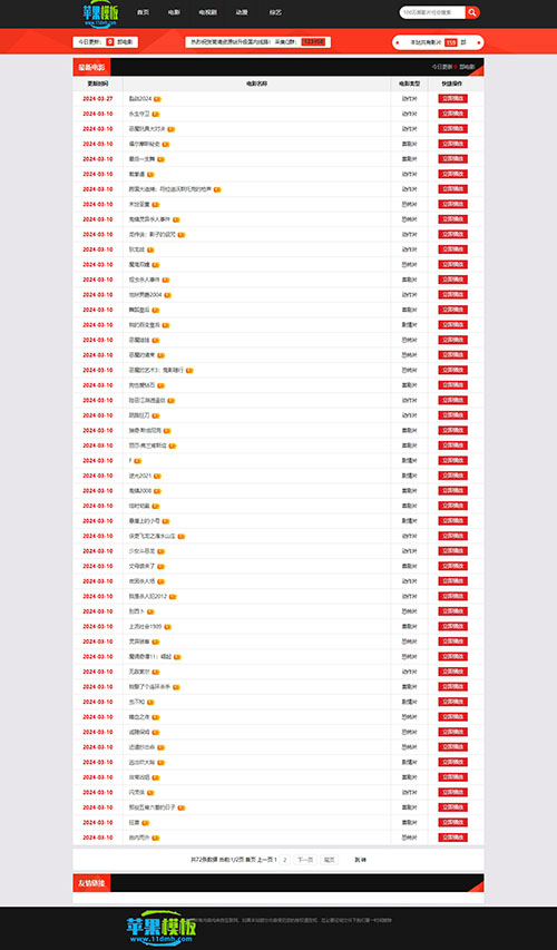 说实话,苹果cms8好模板不多,今天这款影视资源站模板(修复版),界面设计简约,美观大方,代码标准兼容性强,黑红撞色设计,美观大气,页面结构简洁,模板文件图片齐全,包括首页、列表页、详情页。