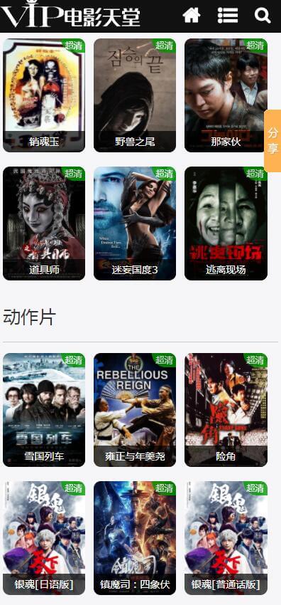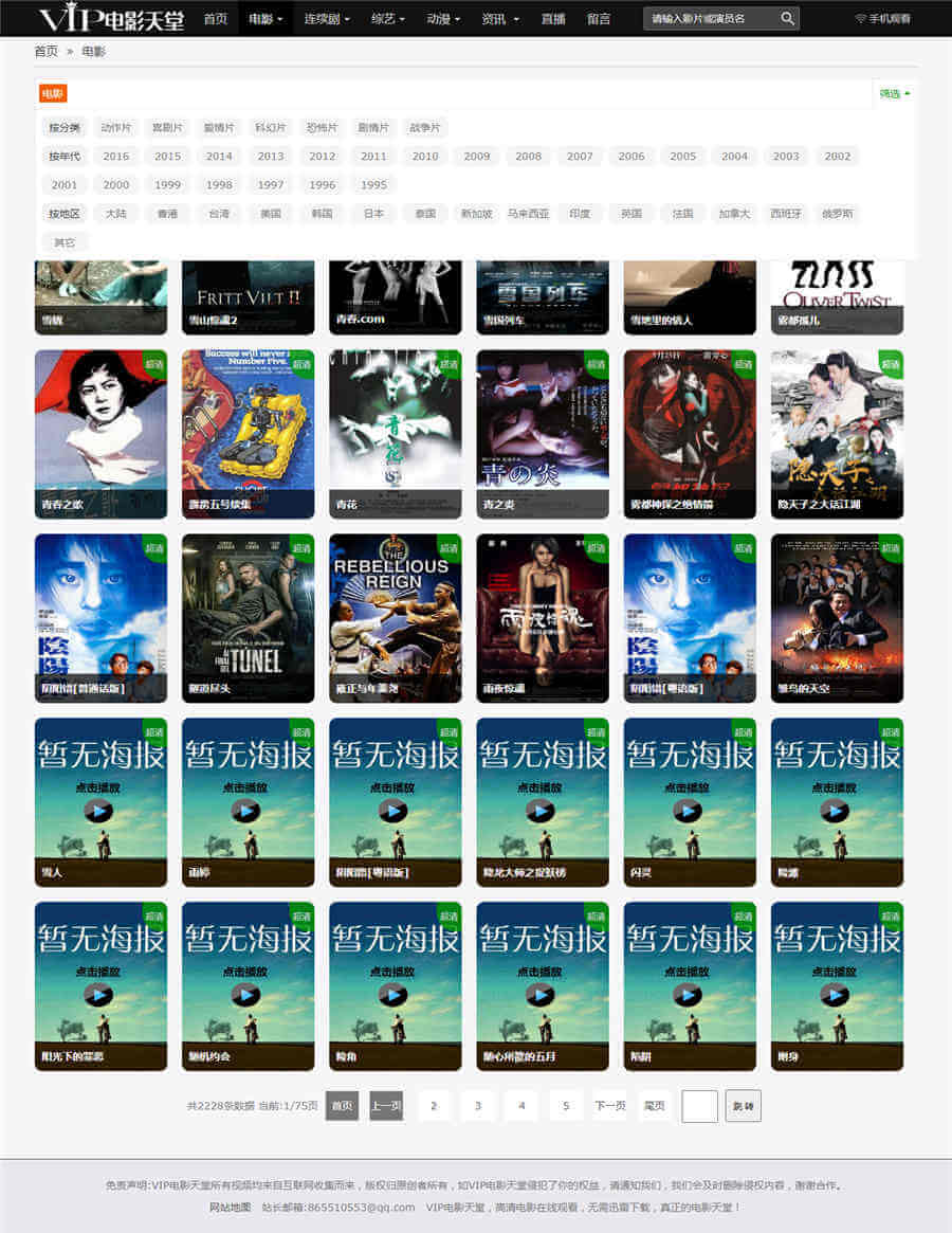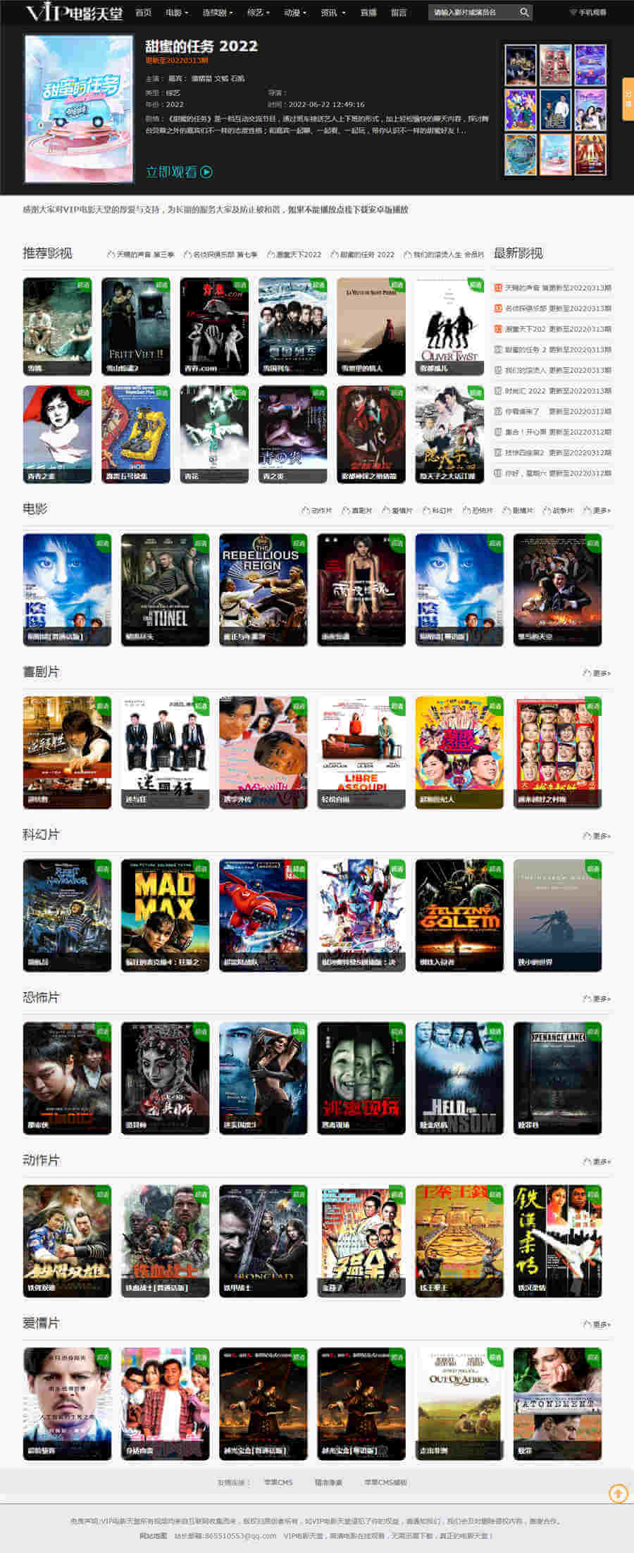 仿VIP电影天堂影视网站模板,苹果cmsV8版本,自适应手机端,已测试完美无错,删除了部分失效代码。