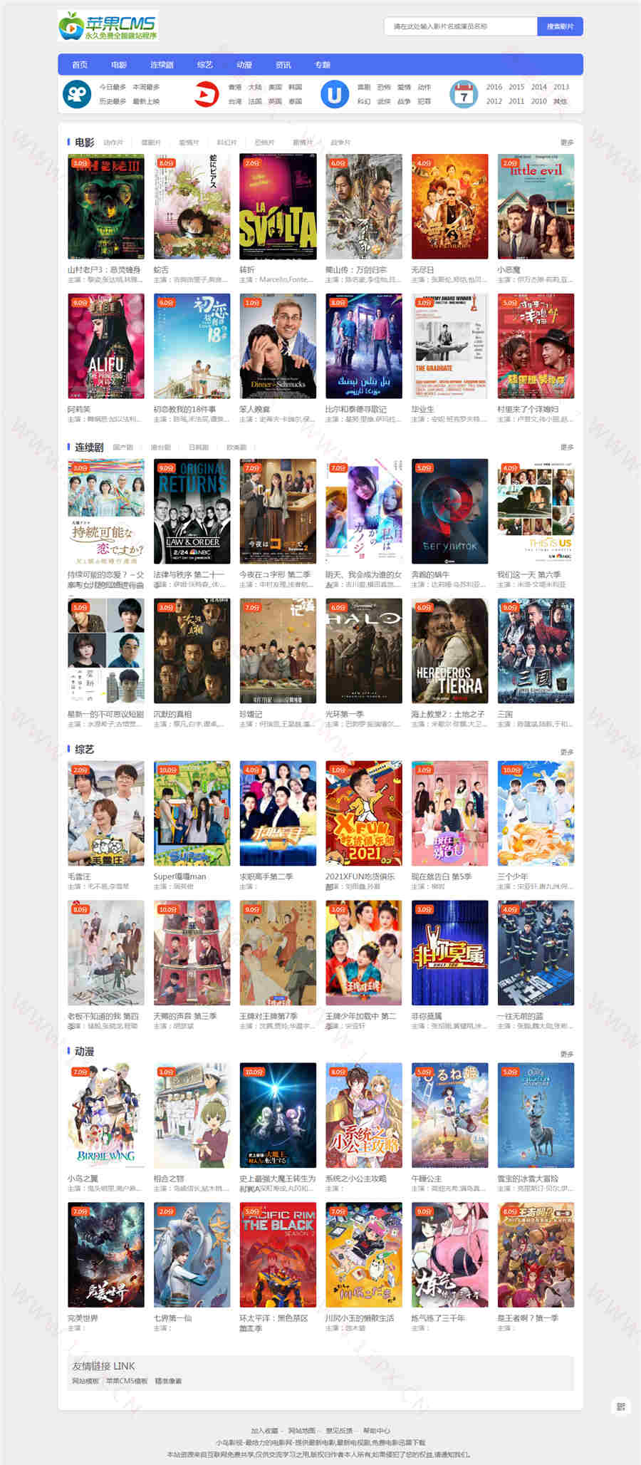 新出品的小鸟影视苹果cms模板,响应式手机端,苹果cmsV10版本,已测试完美无错。