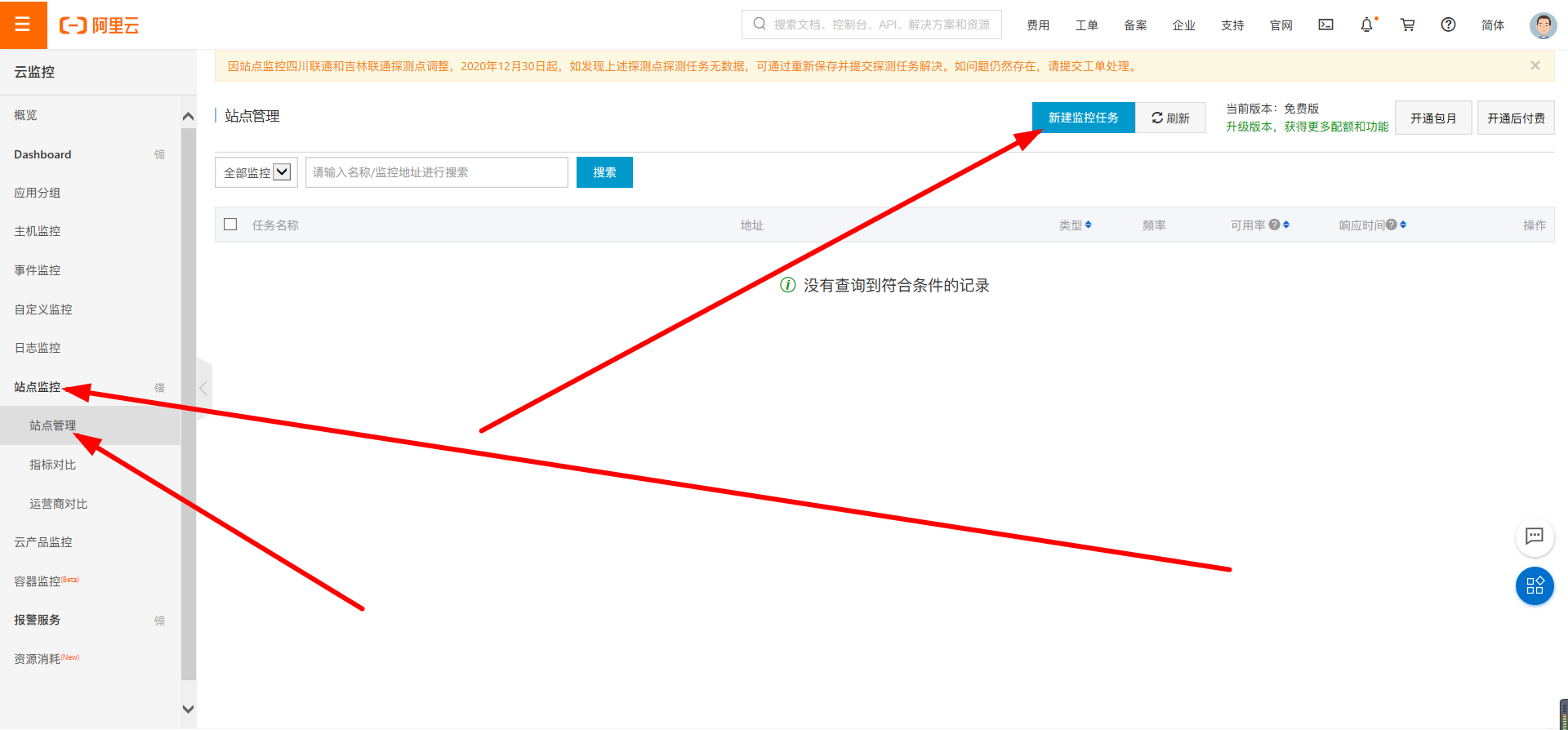找到站点监控-站点管理-新建监控任务