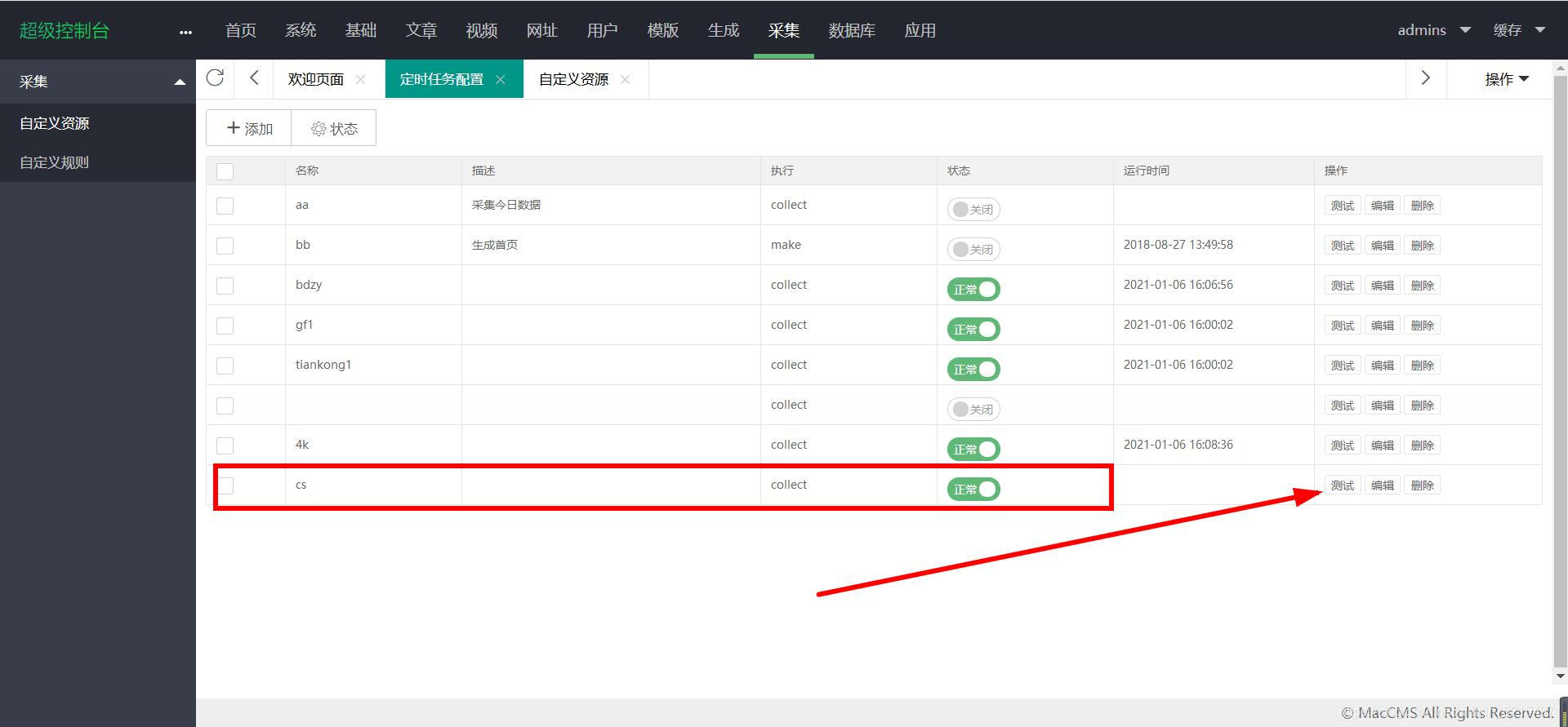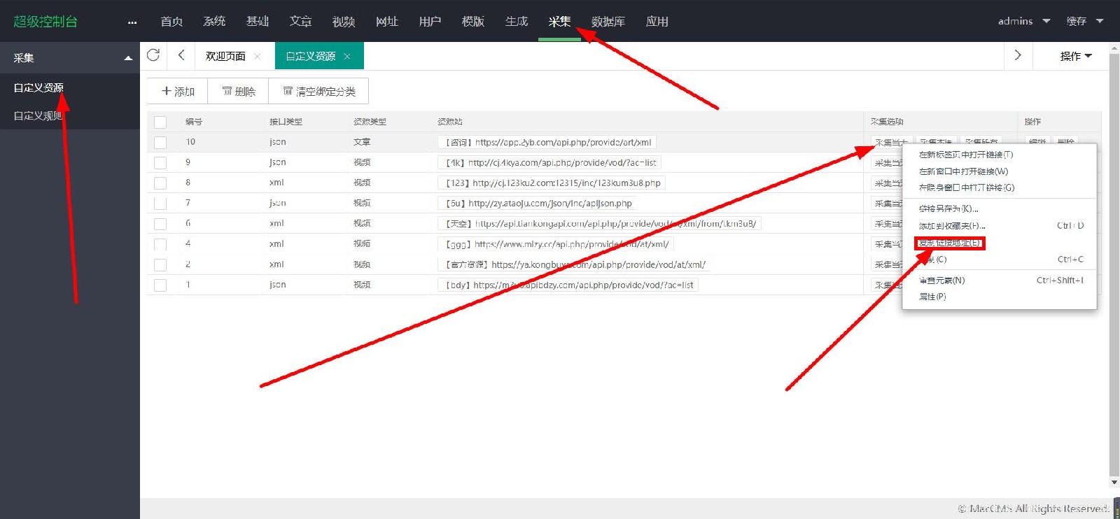 采集-自定义采集资源