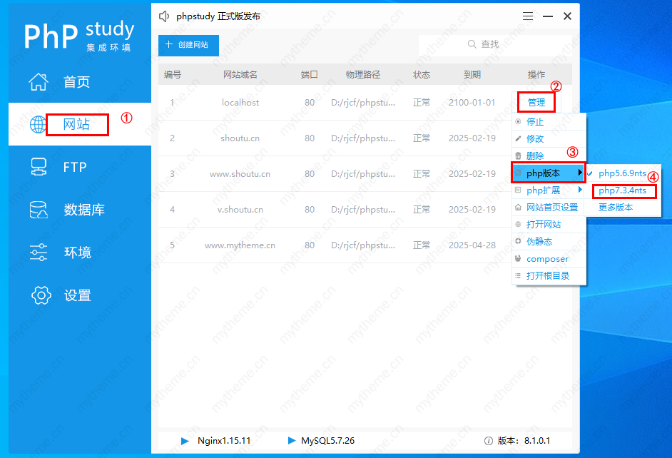 3,切换php版本操作步骤如下面截图1-4所示。