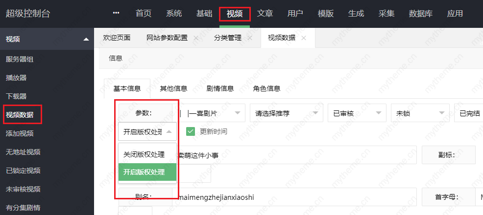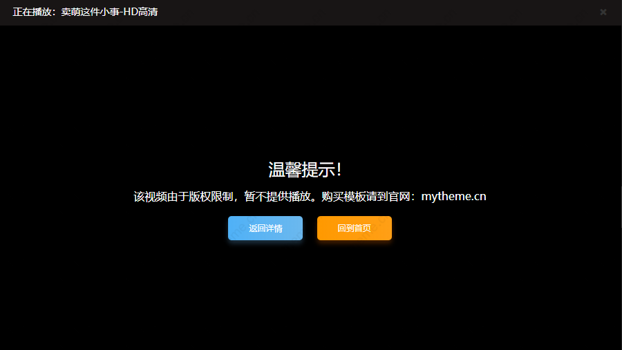 对于收到侵权邮件的小伙伴们应该不在少数,刚刚收录的资源却要遭删除下架的通知,实在可惜,其实我们可以利用苹果cms自带的版权提示功能来屏蔽视频避免删除,下图是设置后的效果,图片中的文字可自定义显示,这样既不会侵权又能优化我们的网站达到了两全其美的效果,具体设置步骤在下面。