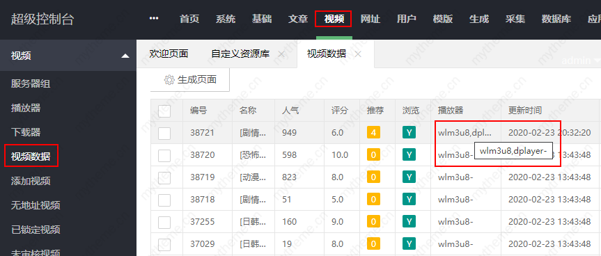 1,为了统一播放器我们需要统一采集m3u8格式的资源然后修改播放器编码。播放器编码修改不太方便我们可以直接选择重新添加来完成修改。添加播放器编码需要先确定播放器的编码。通过查看视频数据可以来确定播放器的编码,图中的wlm3u8就是一个播放器的编码。