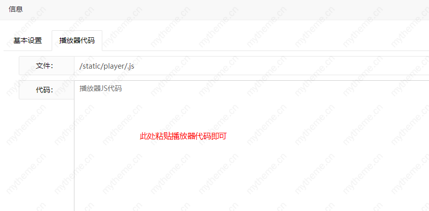 3,播放器代码填写到此处。这就表明我们添加的播放器使用的是DPlayer播放器来播放。