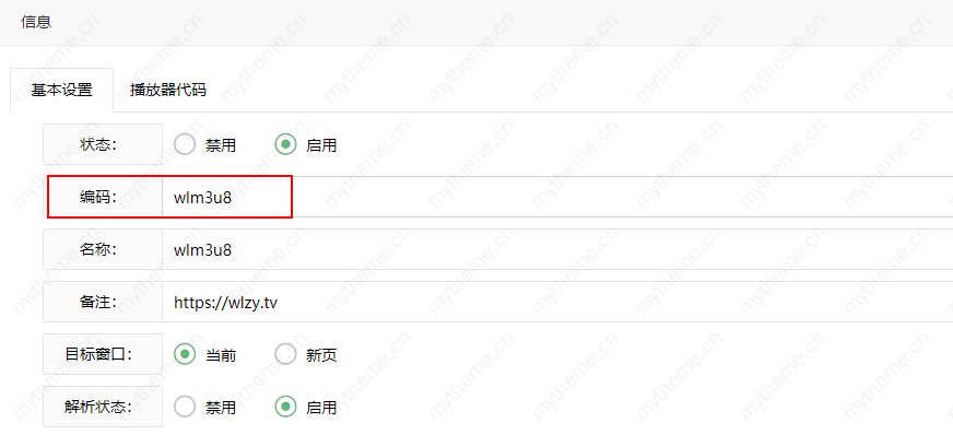 4,想要统一苹果cms的播放器重点就是编码和播放器代码。上面我们添加了播放器代码下面就是编码了,每个资源站都有自己的播放器编码,编码决定着区别每个资源的使命。如果你采集了多个资源站就使用相同的播放器代码重复添加播放器的方法多次添加即可。