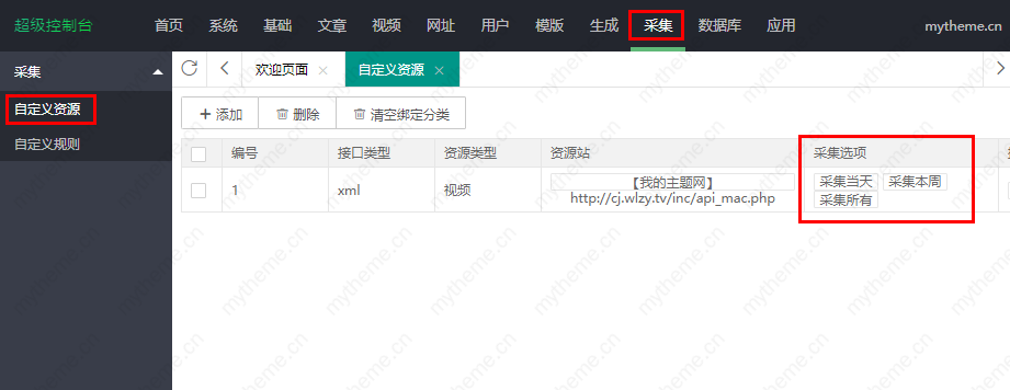 资源类型:我们这里以采集视频为案例,我们选择视频即可。