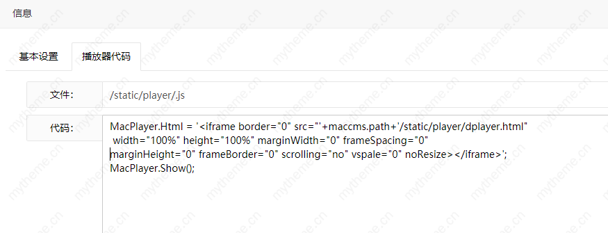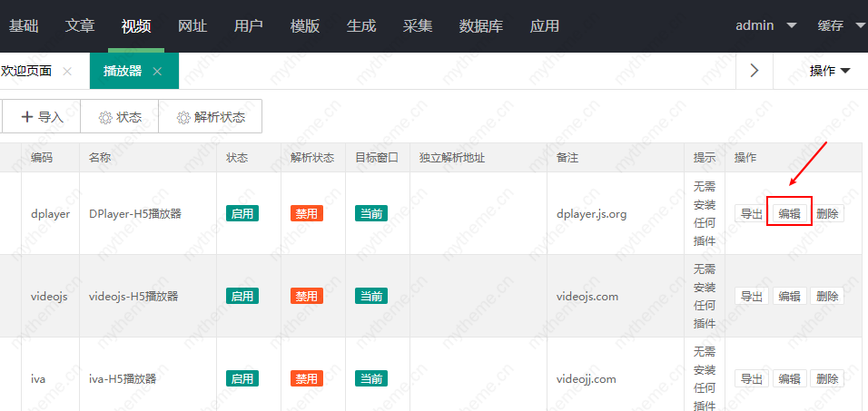 2,如果你不想使用资源站提供的m3u8播放器,就想使用其他的可以播放m3u8的播放器,那么就可以通过添加播放器来实现了,比如我们要使用苹果cms默认自带的DPlayer-H5播放器或是videojs-H5播放器来播放m3u8格式的视频,如下图,这两款播放器都可以播放。