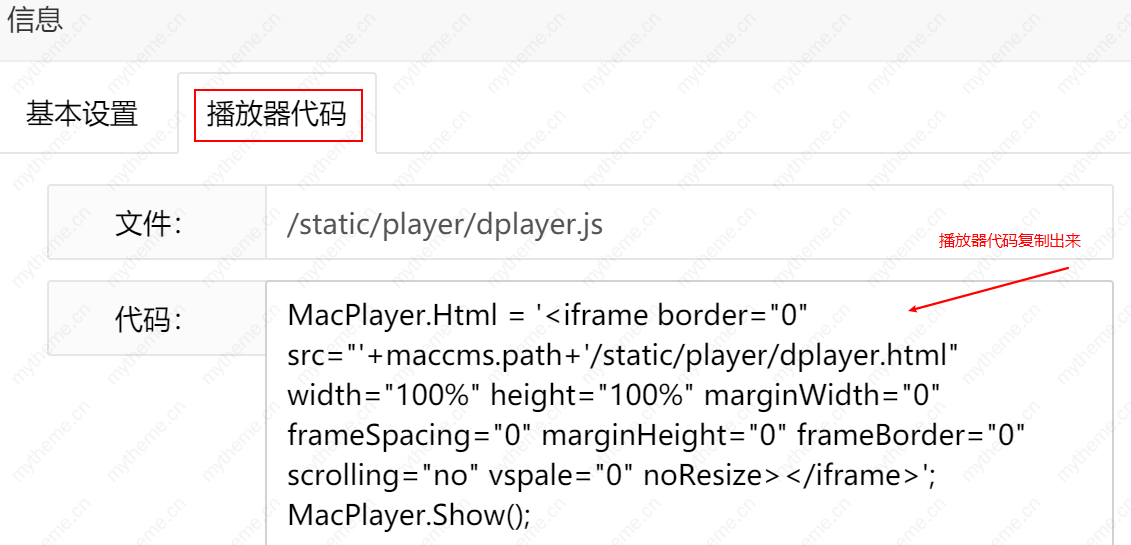 4,把DPlayer-H5播放器代码复制出来