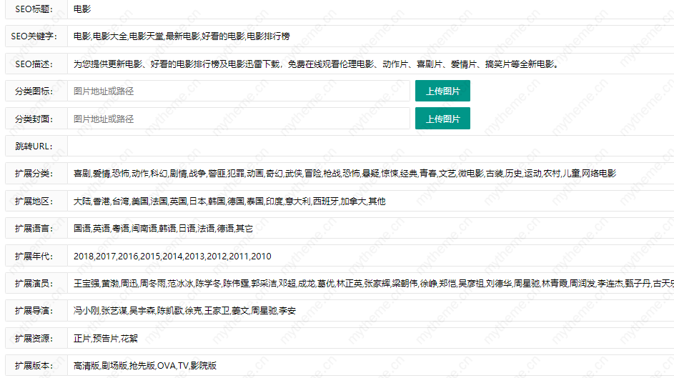 2.还有很多小伙伴要修改分类的扩展分类 扩展演员,扩展地区,扩展年代,扩展演员等一些扩展相关的设置。这些也都是可以修改的,但是还很多小伙伴想要直接去除这个模块,那就需要修改苹果cms模板的代码了。