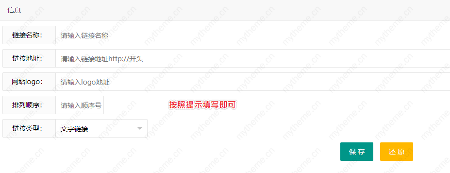 排列顺序:假如你添加了10个友情链接 在这里你可以控制他的排列顺序