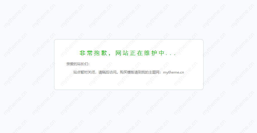 1,我们在网站建设过程或是临时维护中,由于网站还在修改调试状态不能直接让访客(客户)看到网站前台内容,我们只能友好的显示网站临时关闭的提示信息给访客(如下图)。一个这样的页面可以很轻松的通过在苹果cms的后台简单几步设置来实现。