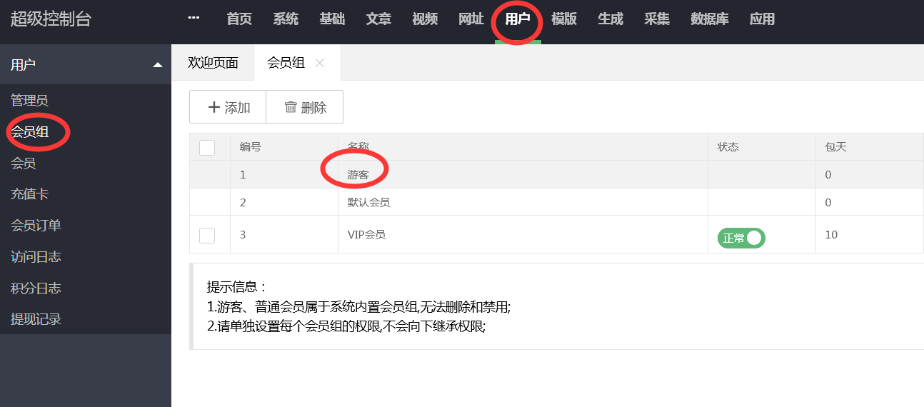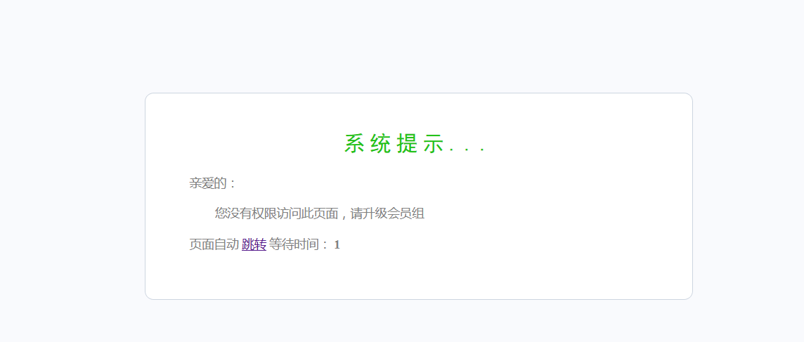 苹果cmsv10系统增加分类打开提示打开提示,您没有权限访问此页面,请升级会员组 2024-06-11 241℃ 苹果cmsv10系统增加分类打开提示打开提示,您没有权限访问此页面,请升级会员组 进入后台,找到用户组的地方,修改游客权限,即可 上一篇:苹果cms定时任务不采集怎么回事? 下一篇:苹果cms一直重复安装解决方法 相关推荐 苹果cmsv10手机模板+pc模板模板安装设置教程 苹果cmsV10上传失败常见问题? 苹果cmsV10nginx下除了首页其他都是404怎么办? 苹果cmsV10常用sql语句删除数据 苹果cms10页面提交数据后过段时间才生效? 苹果cms开启假墙防御后搜索页筛选页的选项参数如何高亮展示 苹果cmsnginx下除了首页其他都是404怎么办? 苹果cms,rewrite说明