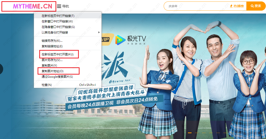 2,这个是本站模板包括其他网站的模板替换方法:前台找到图片路径 根据图片路径替换logo路径,操作步骤就是把鼠标放在网站logo上面右键鼠标,下拉菜单中的“新标签页中打开图片”或是“复制图片地址”粘贴到浏览器打开后的链接就是图片地址。根据图片路径替换logo即可。