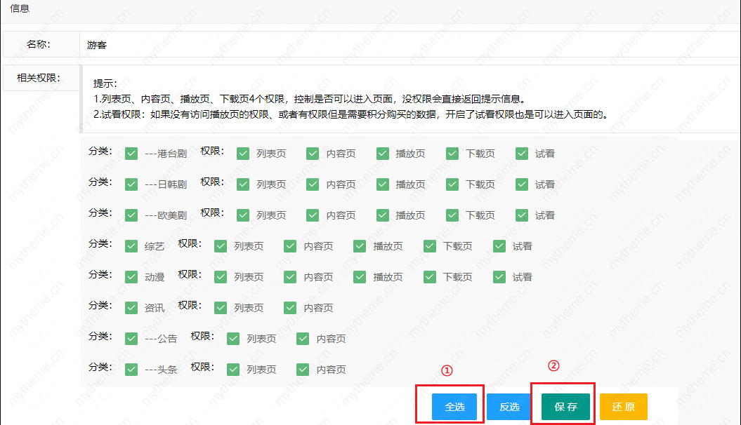 2,刚添加的新分类是没有游客权限的,也就是必须要开通下权限才可以方便观看电视直播。详细的开通分类权限步骤可参考此教程进行开通:/uploads/allimg/220324/ppp style="text-align: center;" >