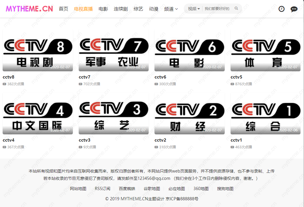 今天给大家写一个适用于本站最新苹果cms带后台模板给网站添加TV电视直播教程(效果如底图),此教程适用于最新几套带后台苹果cms模板
