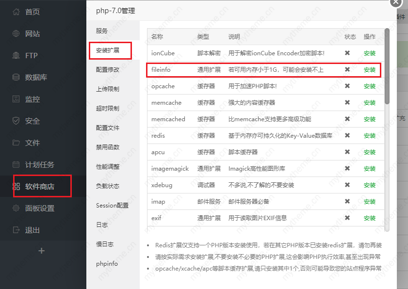 2、修改PHP版本7.0+或是安装fileinfo插件,安装后重启PHP服务。