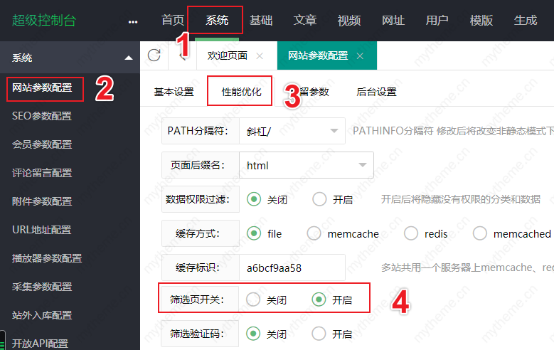苹果cms筛选页功能关闭怎么打开? 2024-06-21 210℃ 1、苹果cms筛选页功能关闭怎么打开? 2、操作步骤:进入系统后台按照下面1-4的顺序开启即可 上一篇:苹果cms数据库常用sql语句对照及使用方法 下一篇:苹果cms如何添加多线路播放 相关推荐 苹果cmsv10手机模板+pc模板模板安装设置教程 苹果cmsV10上传失败常见问题? 苹果cmsV10nginx下除了首页其他都是404怎么办? 苹果cmsV10常用sql语句删除数据 苹果cms10页面提交数据后过段时间才生效? 苹果cms开启假墙防御后搜索页筛选页的选项参数如何高亮展示 苹果cmsnginx下除了首页其他都是404怎么办? 苹果cms,rewrite说明