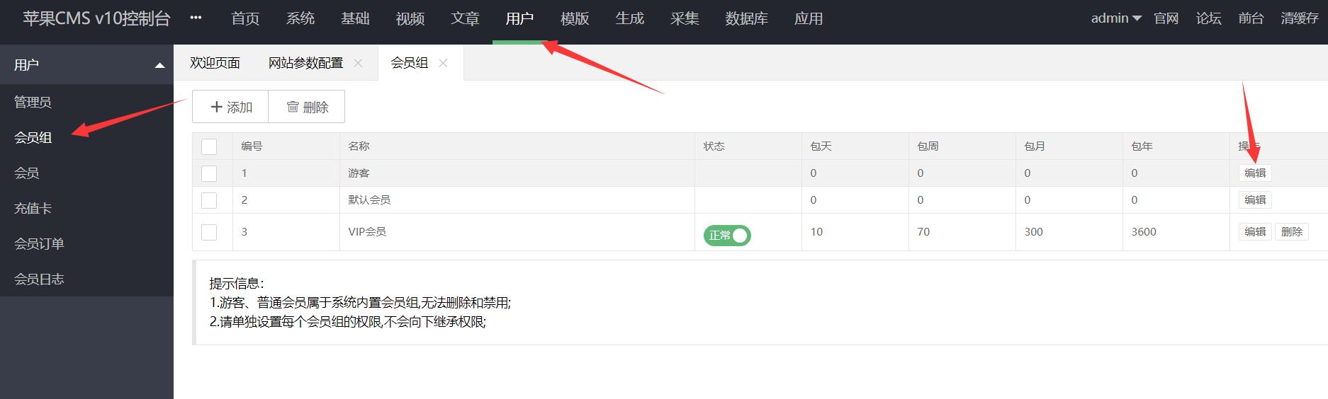 苹果MACcms v10 程序的会员试看功能与用户权限配置教程