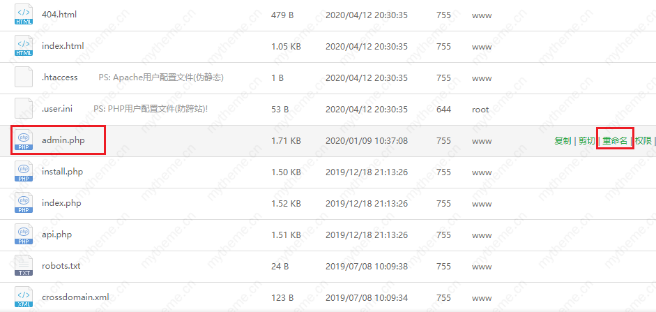 【3】修改完后我们就可以用我们的主域名/mytheme.cn.php登录后台就可以了。