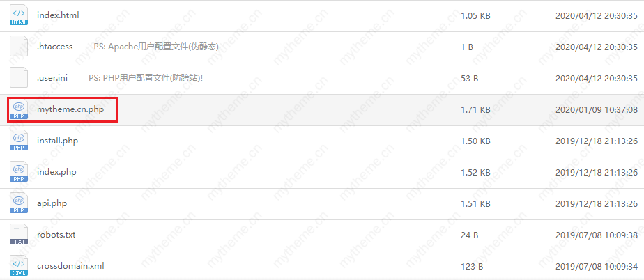 【2】我们举例说明,比如我要修改成“mytheme.cn”这个名称,最终就是“mytheme.cn.php”这里要注意的是文件的后缀一定不要修改,也就是“.php”你如果修改成“mytheme.cn”这个是错误的,不会成功访问的。