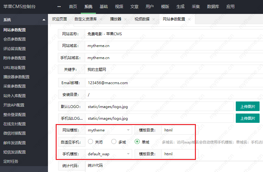 3,双模板设置教程(手机端1套、电脑端1套)