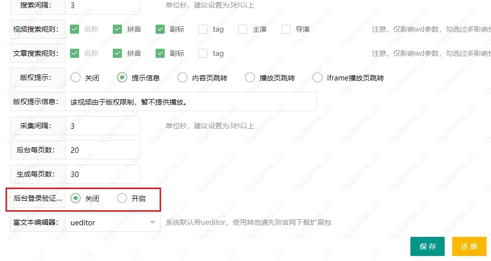 2.下图红框的地方就是后台登陆验证的开关 直接关闭即可。