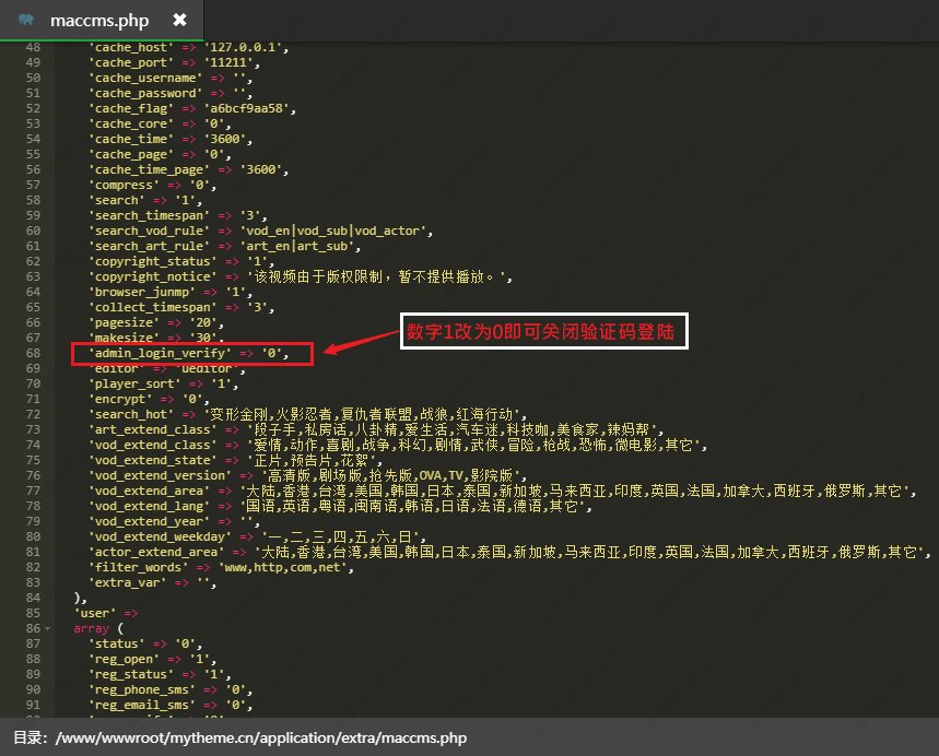 1,网站跟目录/application/extra/maccms.php第67或是68行把admin_login_verify的后面的1改为0即可关闭后台验证码