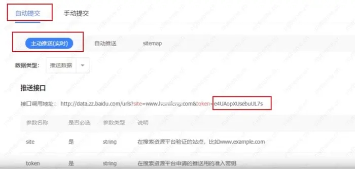 2,点击>>自动提交>>主动推送>>复制(token=)红框内的内容