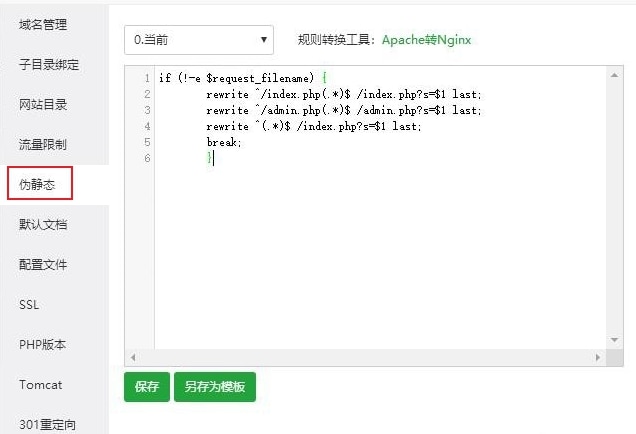 这里需要注意的是:在操作伪静态设置之前最重要的一步先确定自己所使用的环境,然后根据你所用的系统环境上传伪静态规则至你网站空间根目录。如果这一步没确定好后面的操作都是徒劳无功。谨记!