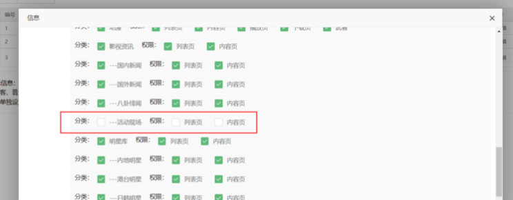 2、进入权限编辑页面之后,我们可以看到新增的分类权限都是空的,没有勾选,我们只要点击勾选即可解决。之后点击保存按钮,保存您的修改。