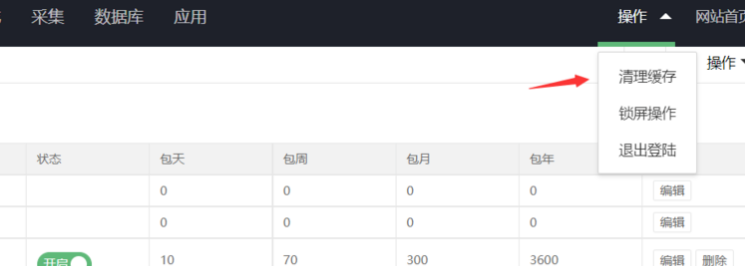 4、全部修改完成并确认无误后,鼠标移到右上角的“操作”,在下拉菜单中点击“清理缓存”。