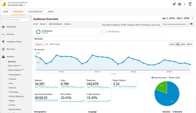 网站分析工具十分重要,Google Analytics(分析)适用于复杂的分析。如你所料,Google Analytics(分析)可轻松地与其他Google资源(例如AdWords,Search Console,DoubleClick以及最近的Firebase)整合。虽然Google Analytics(分析)免费版有一些限制,但功能强大,足以满足中小型企业的需求。