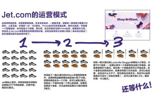 Jet的模式几年前不会成功,但现在几乎每个商家都推出网店,并在寻求与亚马逊这样的电商竞争的新途径,因而这种模式可能会成功。迄今为止,Jet已经与索尼商店(Sony Store)、电子产品零售商TigerDirect.com、Sears Hometown & Outlet Stores以及数百个小型零售商签约。BabyAge是Jet.com上的一个卖家,位于宾夕法尼亚州的詹金斯镇,到东海岸的运费平均每单5美元,到加州平均15美元。网站的定价通常包括了可能的最高运费成本。但通过使用Jet向卖家提供的一套网上定价工具,就可以奖励效率最高的交易。例如,一辆Graco婴儿车在亚马逊上可能卖119美元,在Jet上,美国东北地区的买家从BabyAge购买只要108美元。“这将产生电商中的区域专长,因为现在我可以比亚马逊售价更低。”Jet首席执行官杰克·基弗(Jack Kiefer)说。