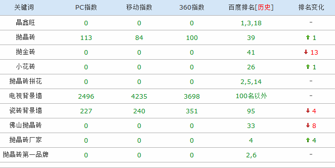 从上图可以看出网站建站9个月了,但是主关键词排名情况不好,而且关键词数量多,分散权重。有些有指数的词竞争度比较大,同时选取这些词从网站的优化角度来看不好,设立一个单独内页去做指数大的词,就算排名上去,也很快会被竞争对手超越。