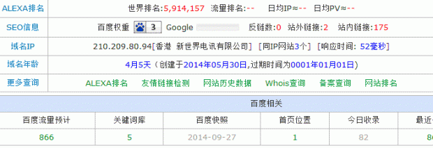 首先域名:我的域名用的是双拼域名,域名年龄是四个月。