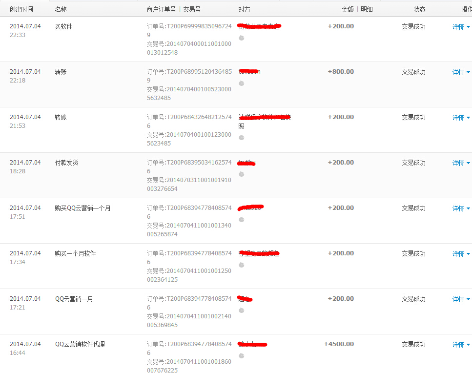 相信大家都听过王婆卖瓜自卖自夸这样的词语吧,个人觉得王婆卖瓜不自卖自夸谁夸?靠用户夸?用户真能赚钱还有时间帮你来夸这个?引来竞争对手?好吧,那就自卖自夸吧,我每天安排客服,把交易量支付宝拍照发到QQ空间、微博等多处,这不是在炫耀,我只是想让那些想买又在考虑买的人自然而然的来找你买软件,我每天都可以接到一些想买又在犹豫的人下定决定购买的人。