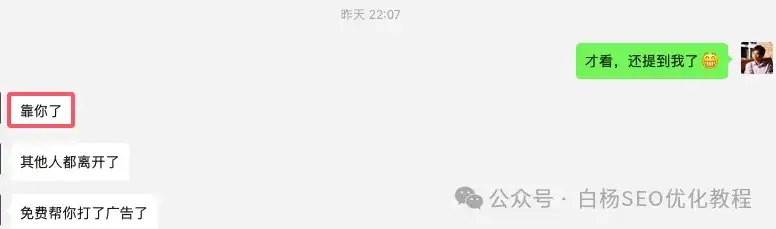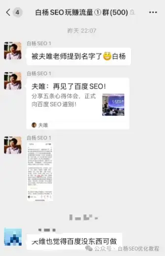 百度SEO靠我?怎么可能呢?只是有人问我为啥【白杨SEO优化教程】公众号不改名?我回答说,这个号就不改了,有人还有对SEO感兴趣会关注,也有一些情怀。