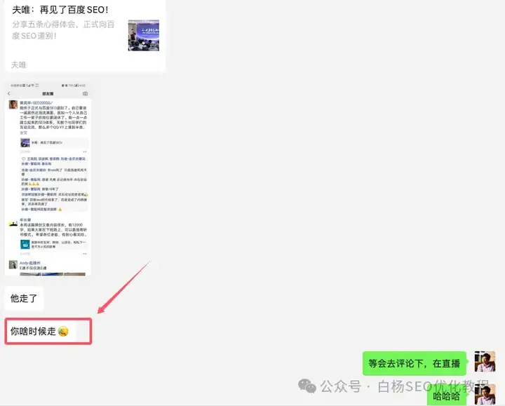 我在视频号做直播时,一位认识多年老朋友,也是我的SEO前辈发了篇文章和一个图片并说,你啥时候走?