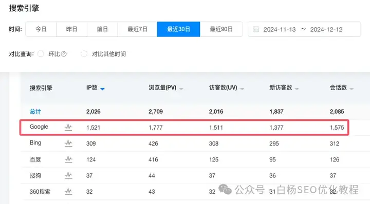 比如,即使不做百度SEO,你也依然可以有个自己的网站。拿白杨SEO自己来说,我的白杨SEO博客网站现在流量第一大渠道也不是百度,而是谷歌,有图有真像。