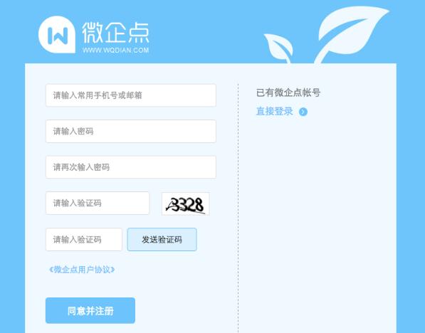 一、搜索进入微企点建站官网,用手机或者邮箱注册账号。注册过程很简单,不到一分钟就可以开通网站了。