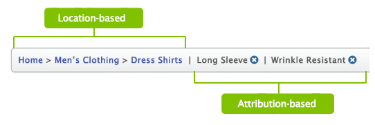 这类基于属性的面包屑常见于电子商务类网站,产品常常基于类别和属性而组织到不同的子目录中,基于属性的分类让用户更容易理解产品和产品之间的关系,提供了更多不同的浏览路径。