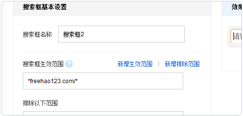 3、选择一个设置搜索框的名称、搜索生效范围等基本信息。
