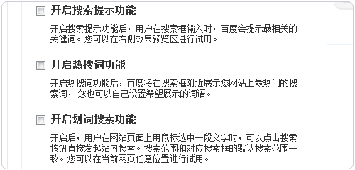 10、百度站内搜索的“高级功能”中可以为搜索设置热搜词提示、划词搜索等等。